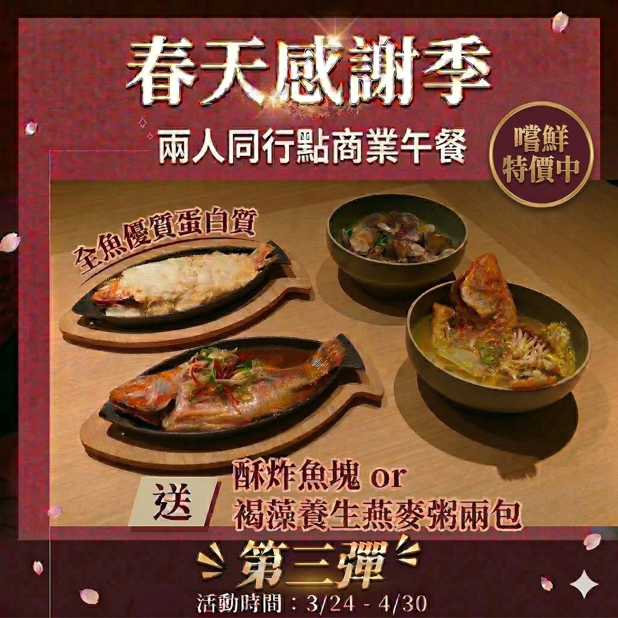 兩人同行再加碼招待「酥炸鮮魚」或「褐藻養生燕麥粥X2包」